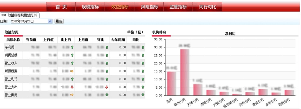 領(lǐng)導(dǎo)駕駛艙是對于管理者開放的模塊,包括管理者日常工作中最關(guān)注的指標(biāo),并且通過直觀的圖形的方式展示,便于管理者快速了解銀行的經(jīng)營狀況以及進行風(fēng)險的預(yù)警。