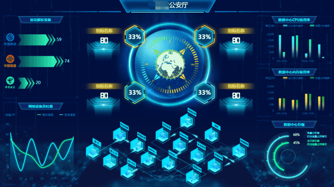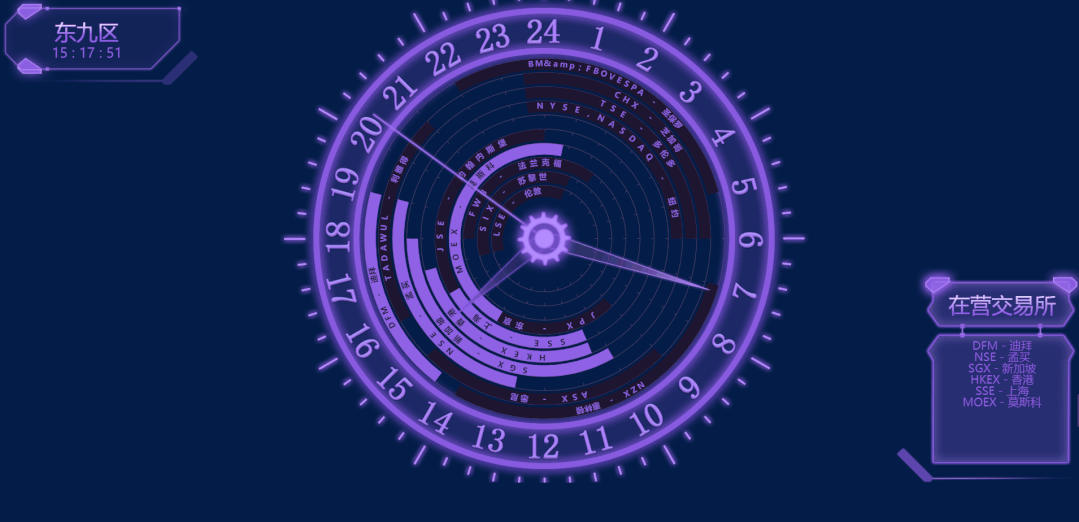 04 大屏可視化組件--輔助圖表 輔助圖表通常圍繞視覺中心的四周,起到錦上添花的作用,用來呈現次要指標,從各種維度進一步細化核心指標。 不需要設置任何數據,實時顯示的當下時間,并且以時鐘表盤的方式,古典有韻味。
