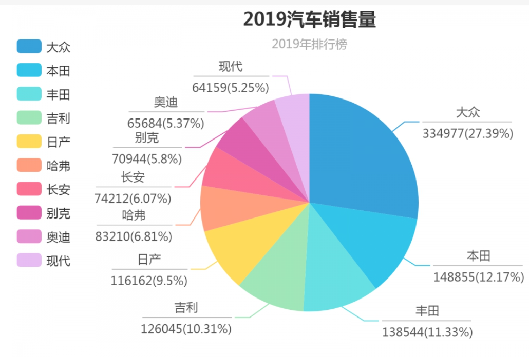 餅圖 一般通過顏色區(qū)分類別,幅度的大小對比數(shù)據(jù),并且可以展示各類別與整體之間的占比關(guān)系。